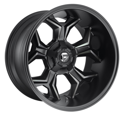 The Fuel Wheels Avenger is a twisted split 5-spoke wheel design with notched spoke details. This wheel features tons of machined details around each spoke and it includes a bolt-on center cap with the Fuel brand logo. It is built in popular 20 and 22 inch sizes in a Black and DDT (D605) or Gloss Black and Milled (D606) finish. The Fuel Avenger takes off-road style for your truck or SUV to that next level.